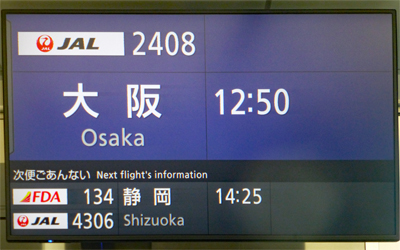 12時50分発、大阪行き、JL2408に搭乗する。 |