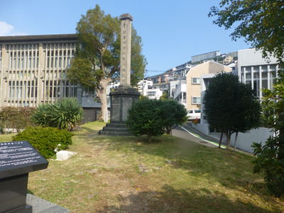 慰霊碑の横には、殉教地であることを示す古い碑もある。背後の博物館も含めて複数回訪問している。今回は、時間の関係で、博物館はパス。 |