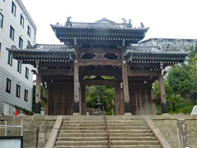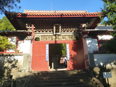 崇福寺。楼門が竜宮城のような中華風。江戸初期に渡来僧の超然が開創。黄檗宗。 |
