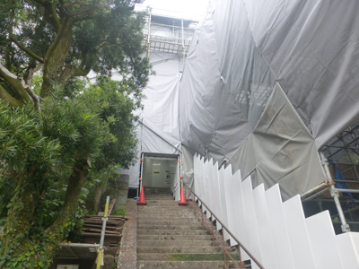 境内に入ると、境内の全域が工事中で参拝しにくい状態だった。 |