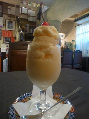 ミルクセーキ。長崎のミルクセーキは氷状のもの。この店が発祥。オレンジ色っぽいのは、卵の影響かな。 |