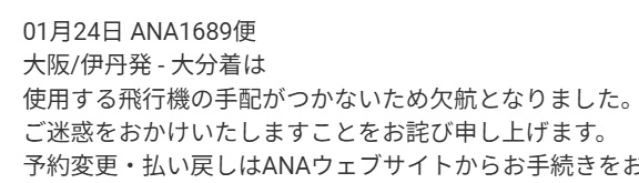| 東九州の旅の出発前夜に、搭乗予定便が欠航というメールがANAからきた。前夜の欠航連絡は初めてだ。悪天候のためではなく、機材の手配ができないという理由だ。その日も翌日も、日本海側は大雪で、欠航路線が多く、余波が及んだのだろう。 |