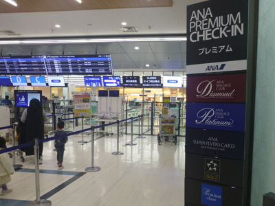 予約を変更して、準備を急ぎ、6時間後には自宅を出た。伊丹に着くと、欠航便も出て、少し混乱している。2階のプレミアムチェックインへ向かう。荷物を預けて、専用保安検査場へ。 |