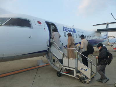 伊丹では、バス連絡はあまり経験ないのだが、今回はプロペラ機でバス連絡。 |