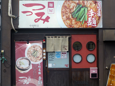 このあと大分市美術館と大友氏屋敷跡を見学するのだが、11時30分ごろになり、昼食をとる。宮崎市に本店など3店、大分市に2店展開という「つつみ」で辛麺を食べることにした。 |