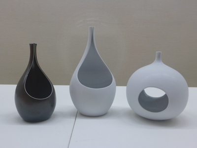 上 ポスターにも使われている食器類。実用的なものも多数あった。左 抽象的な置物もあった。 |