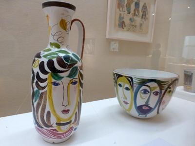 絵入りの陶芸作品もあった。ほかにテキスタイルや絵本の挿絵など多岐にわたっていた。 |
