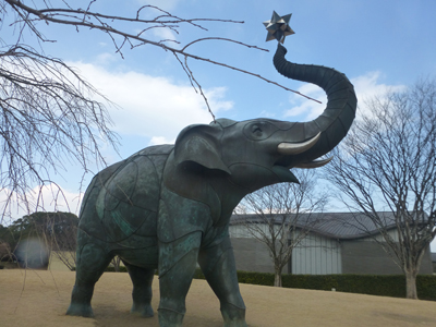 常設展では、大分出身の福田平八郎の日本画や江戸時代の田能村竹田の作品などが展示されていたが、撮影禁止だった。館の前には象のオブジェ。 |