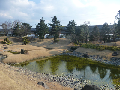 「ボードウォーク」の終端に戦国大名の大友氏の屋敷跡がある。その一角に簡単な展示館「南蛮BVNGO交流館」がある。その前にはキリシタン大名らしく十字架をかけた大友宗麟の胸像がある。 |