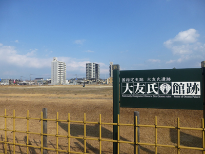 「大友氏館跡」はただの更地で、看板以外は何もない。 |