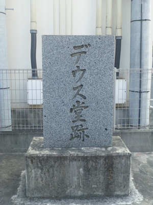 宿の方面に向かう途中、「デウス堂跡」の碑があった。"デウス堂"とは教会のこと。 |