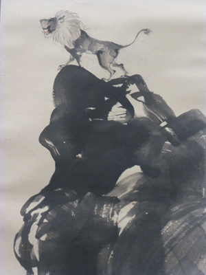ジブリ展入場券で常設展に無料で入れる。一部が撮影可能だった。大分出身の日本画家、福田平八郎の「ライオン図」。掛軸に描かれたライオンは珍しい。 |