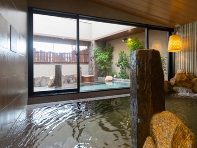 (ドーミーイン大分のHPより拝借)温泉・白糸の湯で入浴。露天風呂のほか、ミルク色をした樽型の風呂もあった。 |