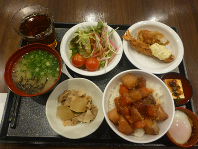 大分の宿で最後の朝食。ご飯はりゅうきゅう丼にしていただいた。食後、チェックアウト。 |