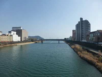 五ヶ瀬川を渡る。思っていたよりも幅がある。 |