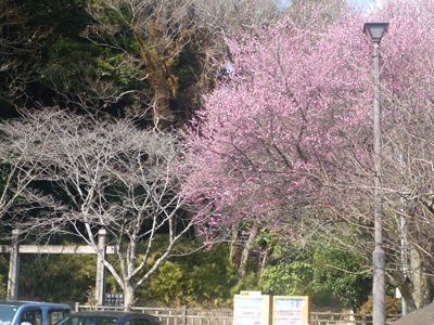 上り口。紅梅が咲いていた。 |