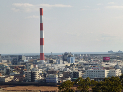 工場の真ん前がイオン延岡店。ここで昼食をとることにした。下 イオン3階から工場を見る。 |