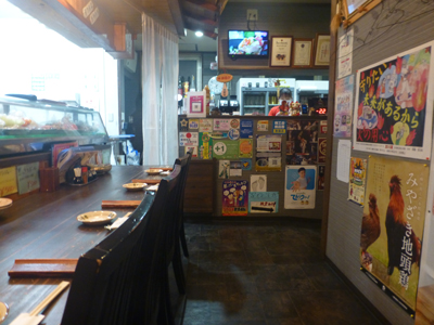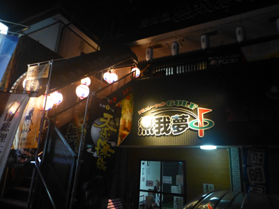 19時から夜神楽を高千穂神社で見るので、それまでに夕食をすませようと、30分ほど部屋で休んだ後、夕食に出かける。歩きながら、宿から5分ほどの「無我夢」を見つけ入店。 |
