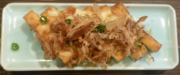 上 厚揚げチーズ焼き。左 卵雑炊。 |