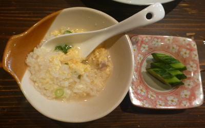 〆に卵雑炊を美味しくいただいて満腹。 |