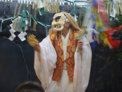 天照大神が天の岩戸にお隠れになったので、天の岩戸を探し出し、天照大神を誘い出そうとする舞が行われた。 |