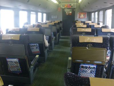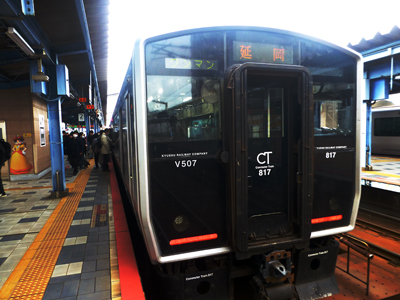 15時2分の普通で空港に向かうつもりだったが、あきらめ、15時20分の「にちりん7号」に飛び乗った。宮崎・宮崎空港間は特急券なしで特急自由席に乗れる。 |