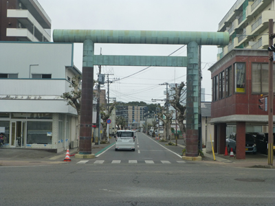 駅と大通りをはさんで大鳥居があり、ここから宮崎神宮の参道。 |