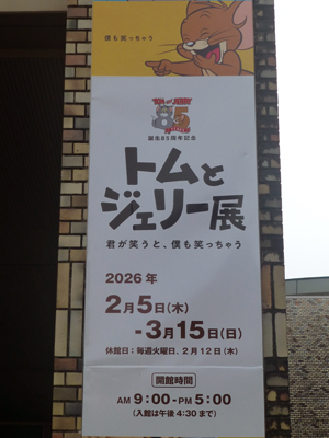 5日後から「トムとジェリー展」があり、面白そうなのだが、この日はその準備のための休館中。 |