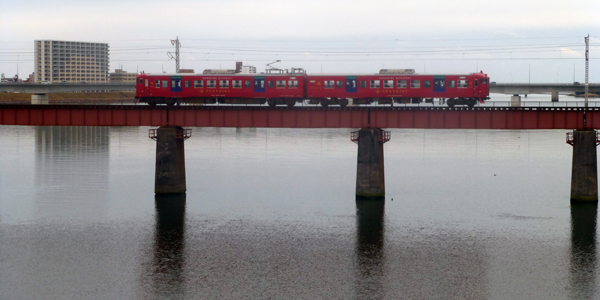 南宮崎駅。宮崎駅周辺ほどの賑わいはないが、宮崎市の南部の拠点という感じがした。 下 大淀川を渡る橋を渡っていたら、JRが通った。 |