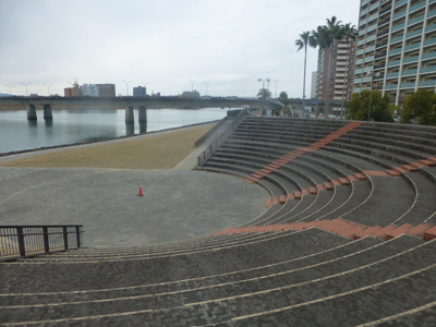 大淀川の北側にある橘公園。ここで催事が行われるのかな。 |