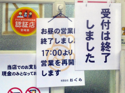 「おぐら」本店に到着。ここでチキン南蛮を食べようと思ったが、様子が少し変で、いやな予感。 |