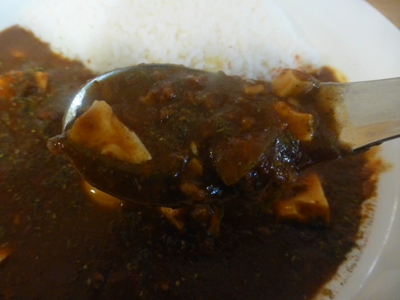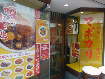 急きょ、別の店で食べることにしたが、開いている店がない。ほとんどの店が昼の営業は終えていた。ようやく見つけたのが「マボカリ」。麻婆豆腐とカレーを混ぜて出している。面白そうなので、ここで昼食にする。 |
