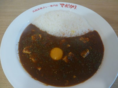 普通のマボカリに生卵をトッピングで注文。中辛にした。辛くても卵でましになるかもと思ったのだが、辛くて、汗が噴き出した。 |