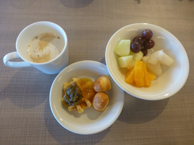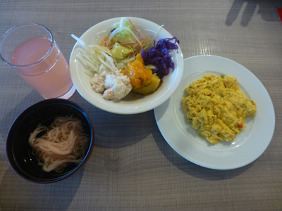 朝食。卵は珍しくスクランブルにしてもらった。 |