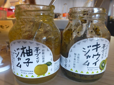 ワッフルにつけたゆずとキウイのジャムも和歌山産。古座川町で作っているようだ。 |
