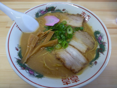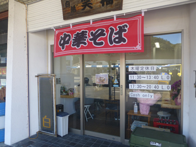 白浜駅前には食事できる店は少ない。その中でラーメン店「笑福」に入店。 |