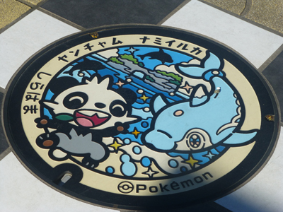 全国にあるポケモンマンホール。白浜町のはパンダとイルカ。 |