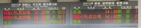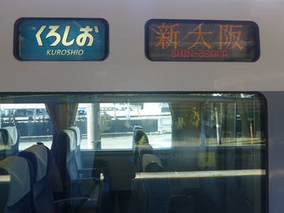 14時51分、新大阪着。新大阪まで2時間30分で、新幹線のある新大阪と博多や金沢間も2時間30分なので、在来線のしかも線路状態のあまりよくないきのくに線方面はかなり遅い感じ。 |