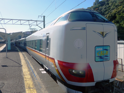 上 くろしお20号、新大阪行き、12時20分発に乗車。左 当駅始発で、切り込みになった0番線から出発。 |