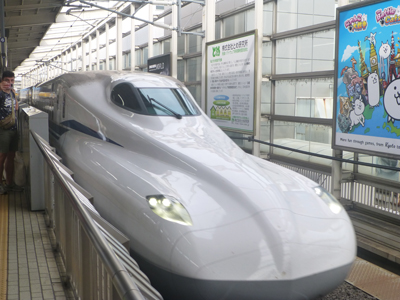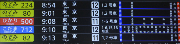 上 名古屋周辺をまわる旅に出発。9時8分発「ひかり500」に乗車する。2分後に出発のこだまなら、到着は20分後になってしまう。京都・名古屋間が無停車のひかりは9時8分発が初便なのだ。左 乗車したひかり。 |
