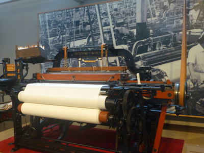 上 長久手市にあるトヨタ博物館も行く予定なので、共通券を購入。使用期限はなかった。左 1924年製の豊田自動織機G型。当時、画期的なもので、織機の歴史では重要なものらしい。これを30〜50台を1人の工員が担当したという。 |