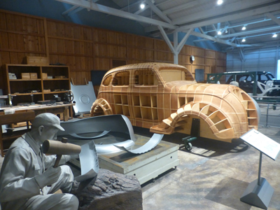 豊田喜一郎は1922年、繊維機械の視察のためにヨーロッパへ行き、自動車にも興味をもった。1934年に豊田自動織機に自動車部をつくり、試作工場で自動車製作をはじめた。その再現模型。 |