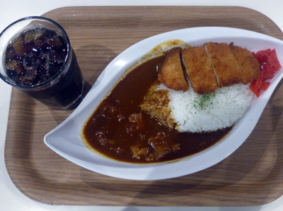 プレミアムカツカレーとアイスコーヒーのセット。辛口だった。メニューの色から見て、プレミアムじゃないカレーは甘口のような感じ。 |