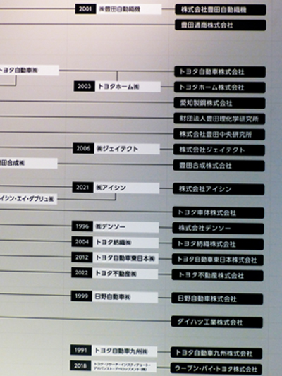 トヨタグループの系譜図。ほぼ自動車関係のグループという印象をうける。 |