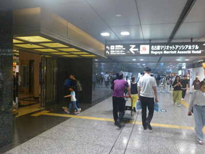 駅構内1階の、JR線から名鉄・近鉄線の方面への通路から、ホテルに入れる。 |