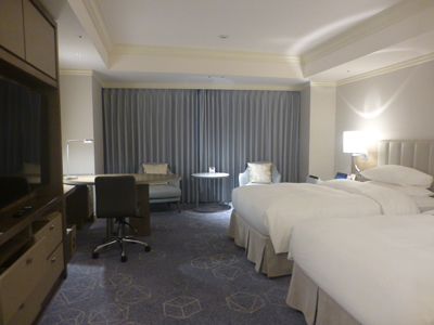15階のフロントでチェックイン。スタンダードを予約していたが、デラックスにUGという。 ウェルカムギフトで。ポイント、バー利用券もあったが、ミニバーで3本飲めるってのがあったので、それを選んだ。 朝食はラウンジだと無料、レストランだと半額になるという。 預けている荷物は、すぐ部屋に運ぶとのこと。支払いはチェックアウト時のようだ。 |