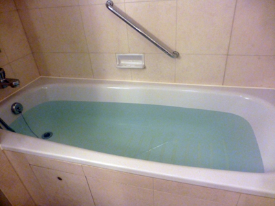 バスはかなり大きく足をのばせた。(撮影は利用時)シャワーが別にあり、シャワーで洗ったあと、バスに入る仕組みだ。 |