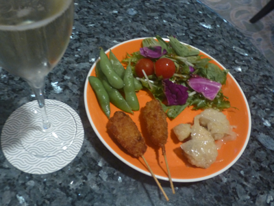 ビュッフェ式の軽食だが、じゅうぶんに夕食代わりになりそうだ。 |