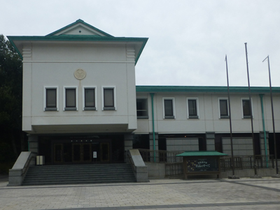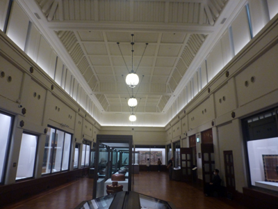 館内の渡り廊下からガラス越しに見る旧本館。1932年の竣工。和洋折衷の外観をしている。旧本館の前庭には行けないので、館内から見るしかない。 |
