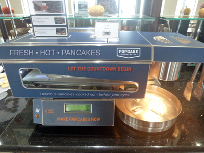 JRで名古屋駅に戻り、14時すぎから部屋で休んだ。15時からラウンジでアフタヌーンティータイムが始まるので行ってみた。 パンケーキを作る機械。 |